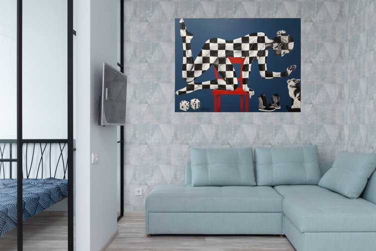 The painting symbolizes the unbreakable bond between the woman and her pet, elevating them to the status of a loving family. It portrays the pet as an integral part of their shared love story, transcending the boundaries of species. This visual representation of kinship emphasizes the importance of love, companionship, and support within a family unit.