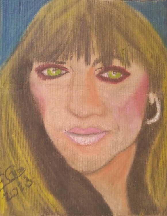 This is a portrait that I painted of a friend in LINKEDIN called: "Helen" using oil pastels on cardboard.