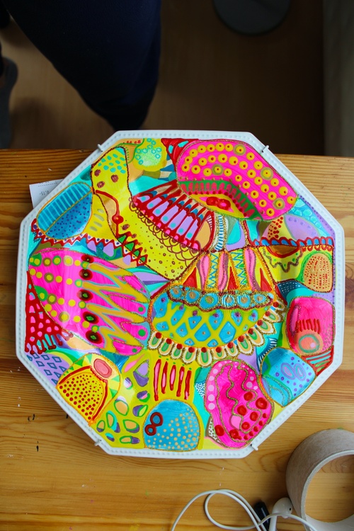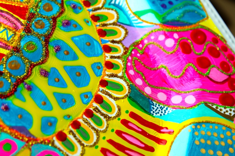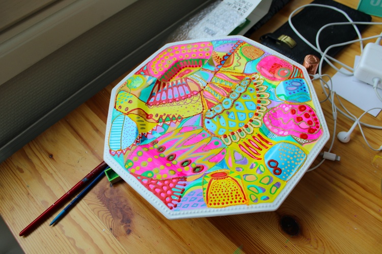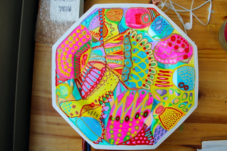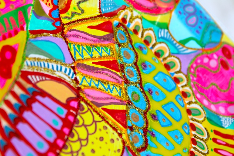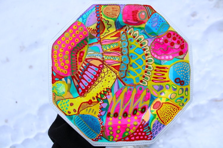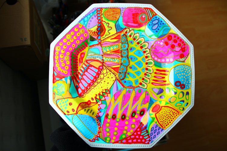 Press here to see MY REDBUBBLE STORE 492. Colorful abstract plate Acrylic, Watercolor on Synthetic board 26x26cm, 2023 Veera Zukova, Finland About the artwork This is a ceramic plate hand painted by me :) The bold and bright colors in this painting really stand out, radiating a warm and cheerful feeling. It's like an explosion of joy for the viewer, reflecting my great mood and bringing a smile to my face. These vibrant hues capture the spirit of the moment and evoke a sense of positivity and optimism. It's a wonderful way to brighten up any room and will bring you plenty of happiness. Painting has become a powerful form of self-expression for me. It's a way to celebrate the beauty of life and express gratitude for all that it has to offer. I love painting because it allows me to express the joy and happiness in life that I often struggle to put into words. Through bright, vivid colors and textures, I create beautiful abstract works of art that express my innermost feelings. Each piece has its own unique meaning, but all of them come from the same source of inspiration: life's joyful moments.