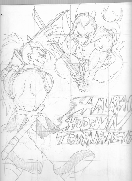Tournament poster illustration for the fighting game Samurai Showdown.