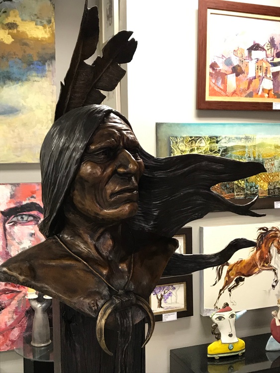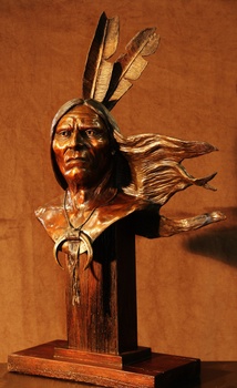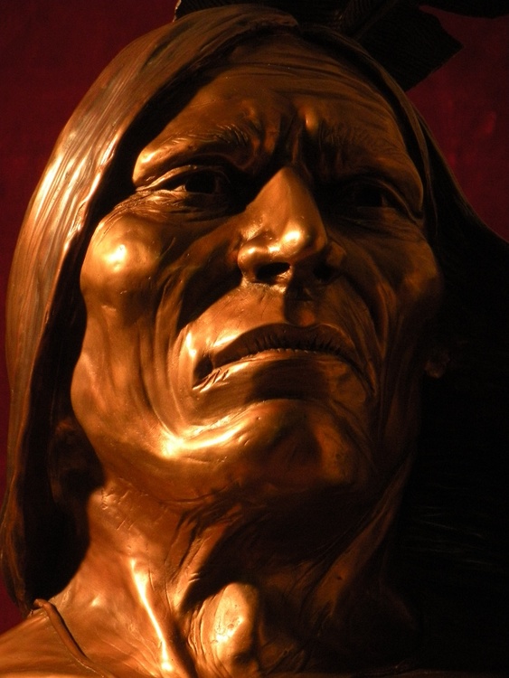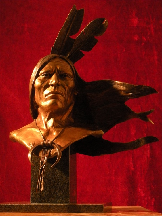 A lifesize bronze sculpture of Fool Bull, a Lakota warrior who fought in the Battle of the Little Bighorn.