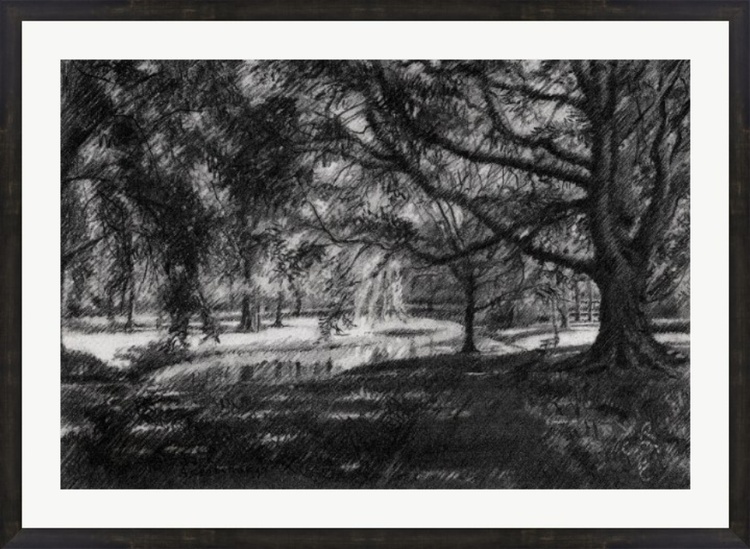 One amongst Many This graphite pencil drawing ‘Park Arentsburgh – 20-04-23’ stretches all the way back to the outer rim of Voorburg. However, my last drawing of Marlot is totally on the other side where The Hague ends. Such is the region Haaglanden where all kinds of little parks are to be found. Tucked away sometimes, where only dog walkers and joggers dwell. Once in a while an occasional artist dwells there, looking for suiting motifs to draw. That would be me. I see it as a task bestowed upon me to call a bit of attention for these little jems. Forum Hadriani The place actually is the very spot where Forum Hadriani once stood. Not that you could notice nowadays. All the remnants are gone now. Only some plaques to explain where and how the old roman city was situated. The park itself is comparatively small, even feels a bit snug. However, there are some old trees to be found and a little pound. Hence some water reflections, catching leafy structures in the water. Enough to draw wonderful artistic motifs from. And so I did but that was only last year. It’s still freezing cold, especially today. The north wind made me put on gloves again and trees are not fully in leaf yet. So a draw from my hugh pile of reference pictures this time as well. But I am patient. General Winter soon will disappear. Lucky for me, too bad for Putin. In-Betweenie Back to my drawing. This one has become a bit of an in-betweenie. That means, I was drawing this, completing my oil ‘Melina Noëlle – 18-04-23’. Painting sucked up most of my attention last week but I have some spare time left occasionally. So I sketched this one bit by bit waiting for my students at Brugman Art. I finalized it today doing some bits and bobs, especially in the leaves. Quite hard to differentiate in the leaves in the back and to get some contrast in the front. I started out hatching in my peculiar diagonal stroked style. Soon I found out I had to cross-hatch in order to make it more interesting. Perhaps you will agree? Graphite pencil drawing (Sakura 0.5 mm, 4B) on Winsor & Newton Bristol board paper (21 x 14.8 x 0.1 cm – A5 format) Artist: Corné Akkers