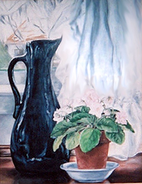 As with many of her paintings, this still life is of common objects or scenes from Leona's life as a mother and housewife.