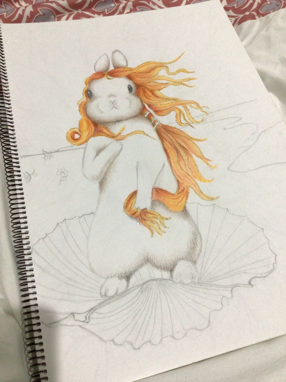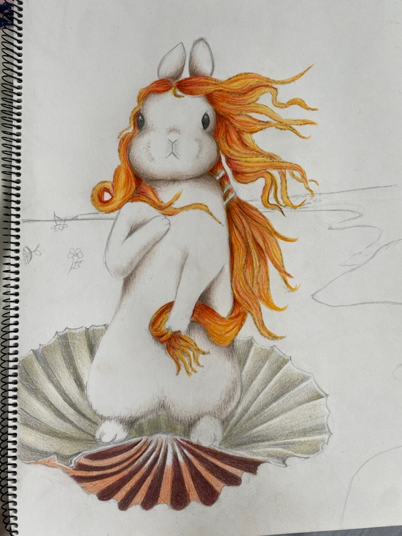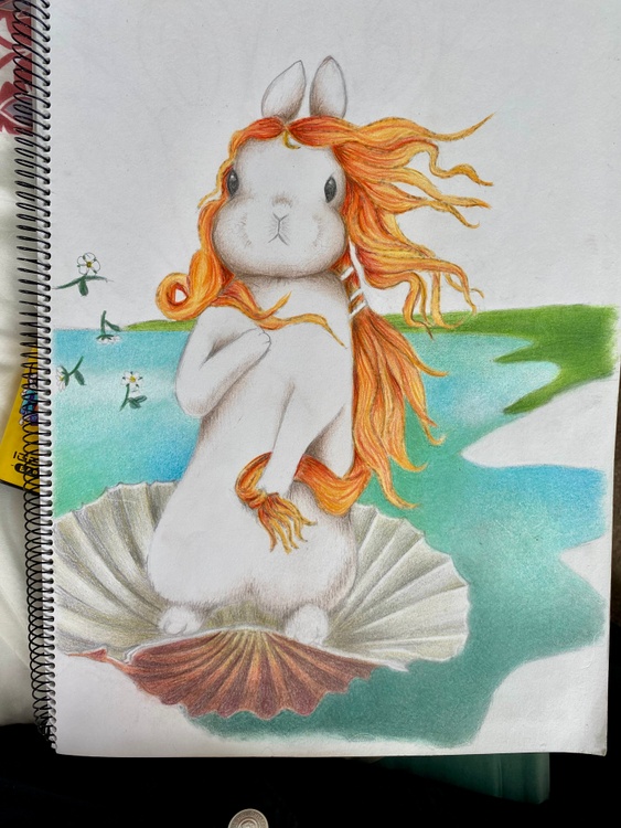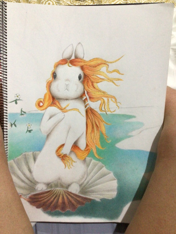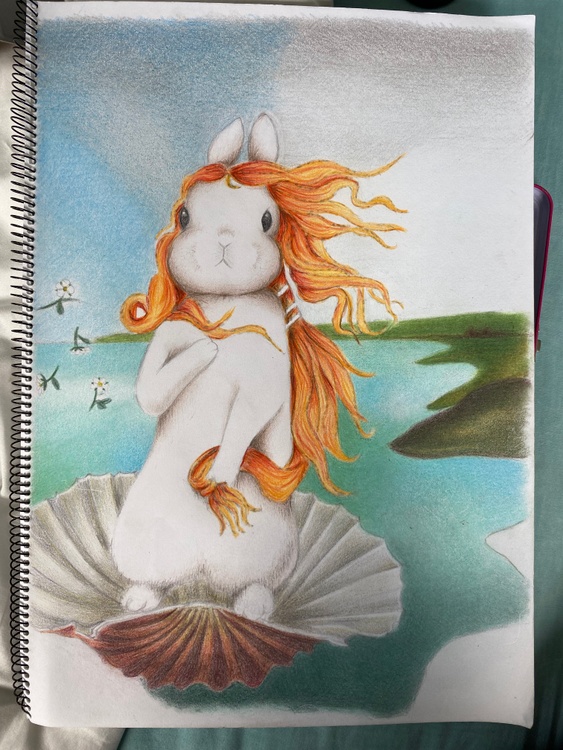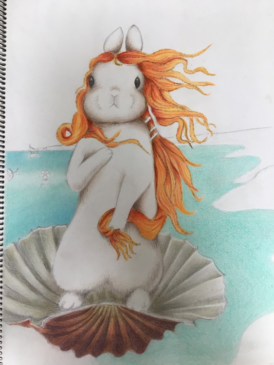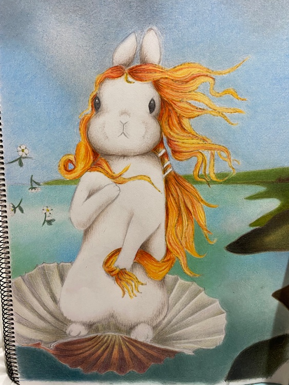 My version of Botticelli’s Birth of Venus. This is an A3, coloured pencil illustration.