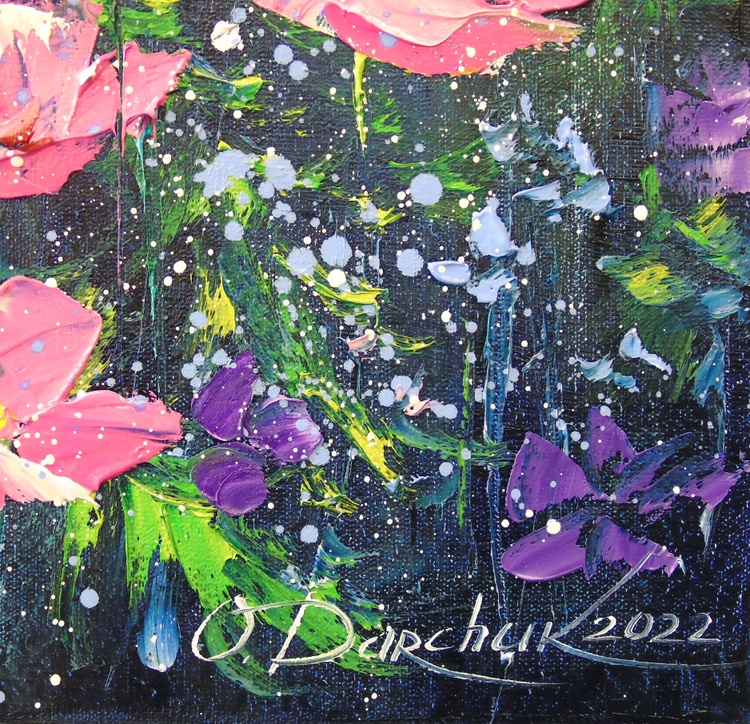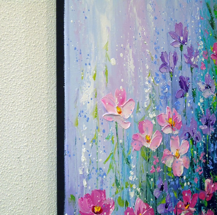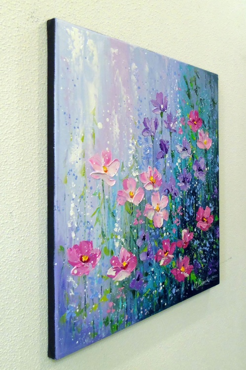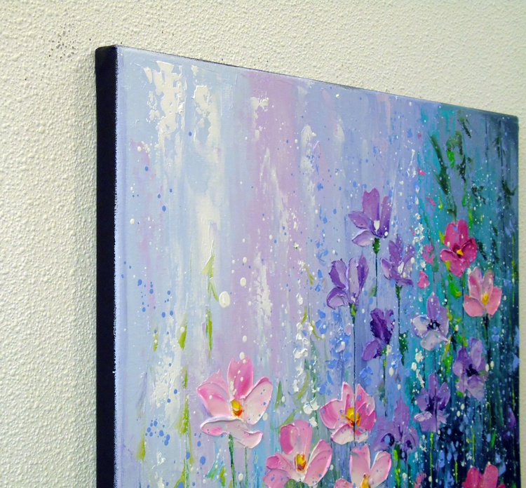 The delicate summer flowers painting is painted with oil on canvas with painted edges, 100% handmade with a palette knife and high-quality paints, for a gift or for the family. Only positive emotions will be given by my work. Ready to hang. In this oil painting, I've poured my soul into capturing the ephemeral beauty of nature's blossoms. Inspired by the impressionist masters, each stroke embodies the delicate dance of summer flowers swaying in a gentle breeze. Soft hues kiss the canvas with a symphony of light and color, inviting the viewer into a serene, enchanting garden. It's a celebration of life's fleeting moments, frozen in time just for you, to bring warmth and vibrant energy into your living space.