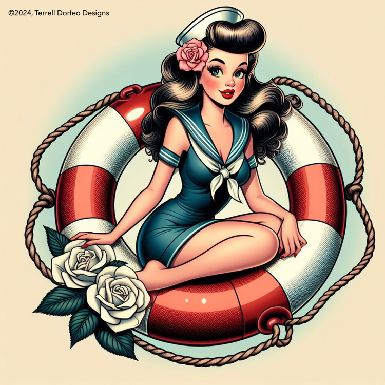 Throw Me A Line. Terrell Dorfeo Designs and AI art created her.