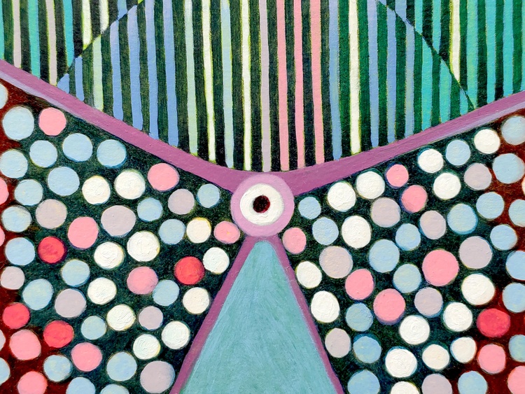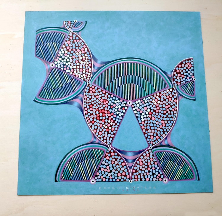 An original piece from the series “Embroideries”; oil on thick paper; 40 x 40 cm, 2022. The maps of the sky, unlike the traditional maps, have no edges or boundaries. Here there is no demarcation between land and water, there is only the position of dots representing the stars in the vacuum of space, and possibly the lines joining these points, to create similarities with animals, symbols or objects that help us remember and recognize. The plot of these points and these lines creates a fictional embroidery. This is the starting point from which I begin this series of paintings. But here the map quickly becomes tangled and twisted. Symbolic forms and objects appear. At first they seem to be of value in orientation, but soon they reveal to be obstacles, capable of generating a maze, and so you get lost, passing from a geometric order to the chaos of a tangled skein.In case of sale shipping is worldwide free.