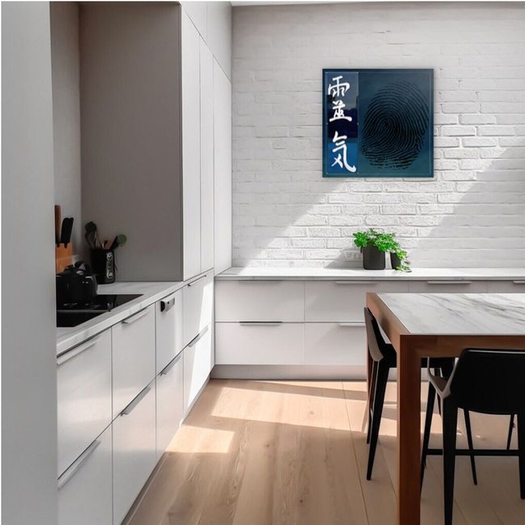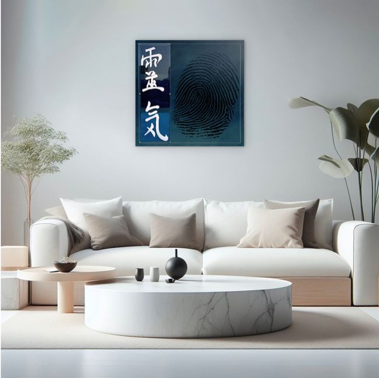 Nella mia opera, ho fuso la vitalità del pop art con la profondità dell'arte orientale e forme geometriche, creando un pezzo che parla di identità e connessione spirituale. Il simbolismo si manifesta attraverso il contrasto e l'armonia visiva, invitando a una riflessione personale sull'unicità e l'impronta che lasciamo nel mondo. Questo quadro porterà una carica energetica di introspezione e colore nel vostro spazio.