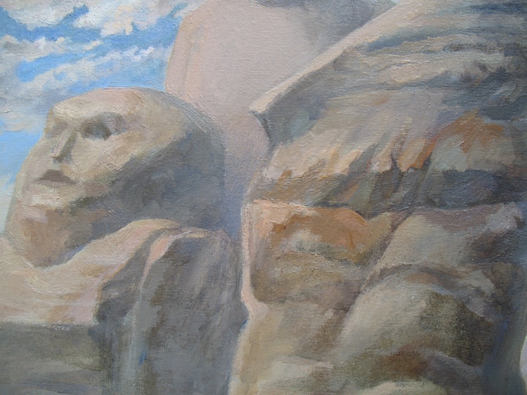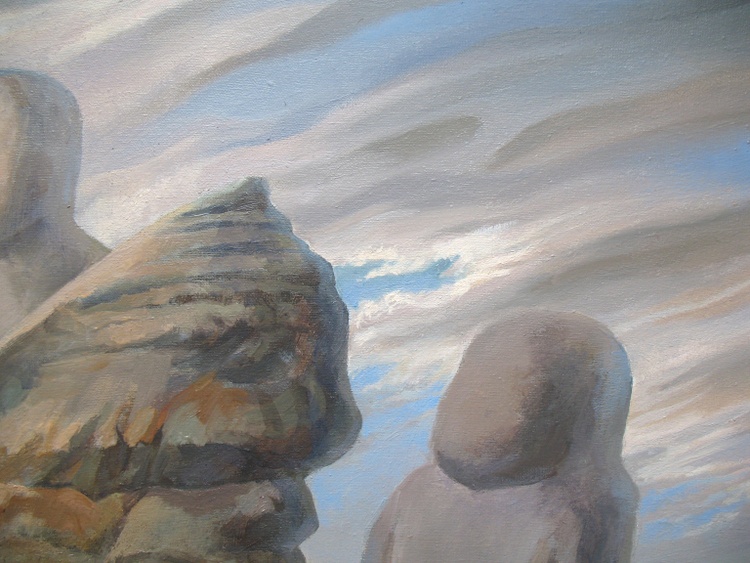 What do we see? Or maybe it seemed? Yes, these are stone people sitting on the mountain! Maybe this is a trick of light or a well-chosen angle? Really, what's the difference? We see in front of us exactly what we want. Reality is born in the mind of the observer! It is a projection of our expectations and intentions. Why do people of art often have insights? Because they see the signs and are attentive to minor anomalies that they are ready to detect. They do not look across, but see the essence beyond the outer screen. Why is what we see happening in the world? Because it is a projection of a social intention that does not have consciousness, that does not understand how dangerous it is to imagine its worst fears! Observation is an active process, and not a simple study and analysis of something that already exists, created without your participation. Few are able to actively observe, creating an ideal reality. Compared to the vast majority, their activities are a drop in the bucket. But this does not mean that you need to stop doing it. So be careful! Look at everything from above, like these stone people guarding the dawn. The sun also looks at us, illuminating everything with its light. The bright rays of the sun can overcome even the densest gray clouds. The darkness recedes, recognizing the superiority of the sun. And a new day comes. This painting is about active observation and mindfulness. It will remind its owner of simple truths that are forgotten in the bustle of everyday life. You'll definitely have a lot to talk about with your guests while watching Dawn Keepers over a cup of tea and discussing all these things.