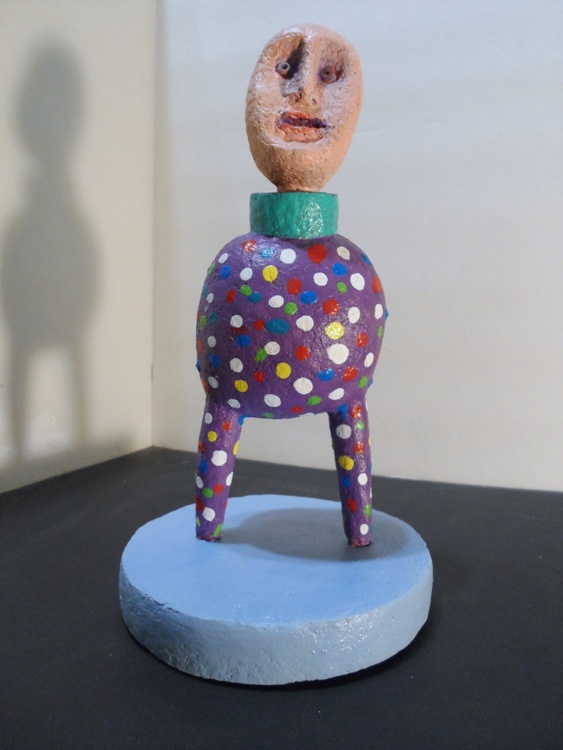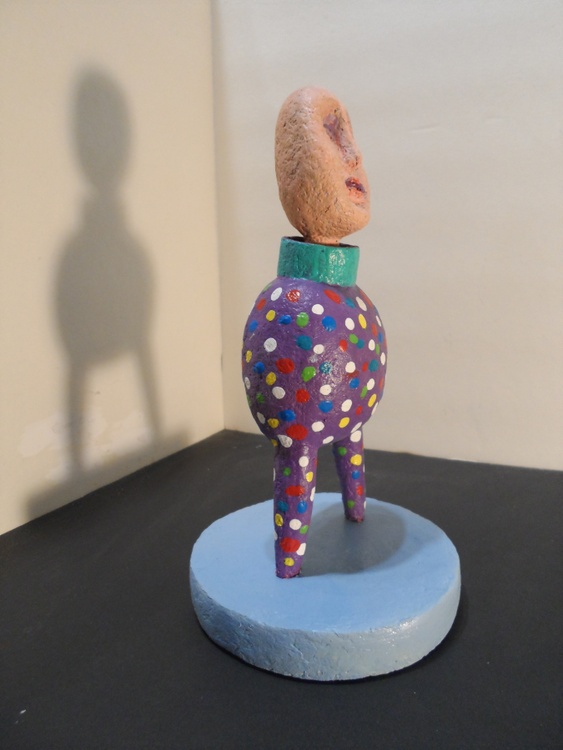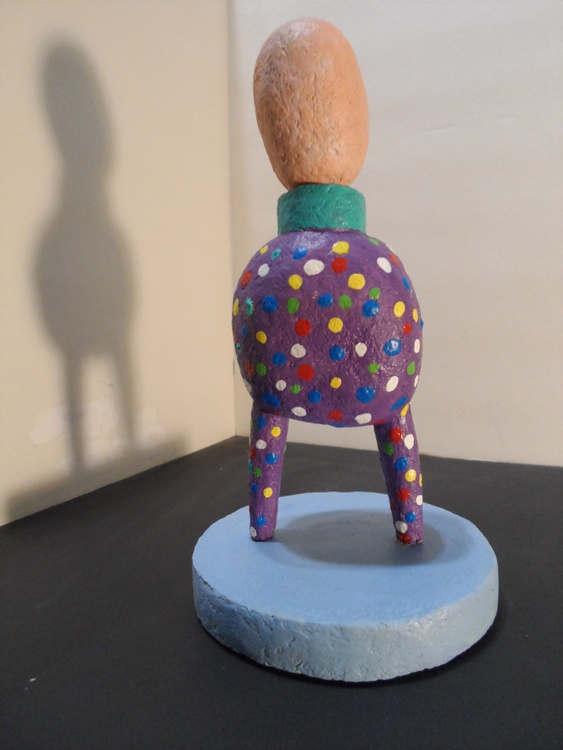 The earliest piñatas were made of clay and more like jugs than what we see offered in stores today. These were filled with natural edibles like fruit and nuts. Given what my little 3D offerings are made of, the title seems most appropriate. Two grey beads make up its eyes. It is 9.5 inches tall including base and 5 inches deep and wide (also measuring the base.) Original Jones Art isn't offering any nutty goodness but his own in northwest Austin, Texas. Added note: the head is removable. I've an idea to make several more for it.