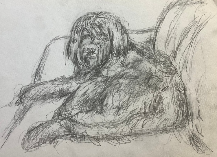 Study of my sketch of my hairy black dog. To challenge myself using different mediums, pastels, watercolor's , oils and acrylics. Learning and hopefully learn new art skills