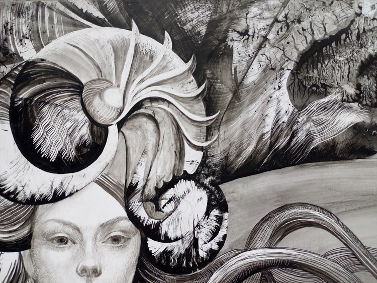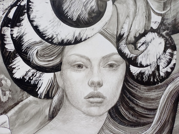 The melody of the ocean's soul emerges from its depths. It is like an echo of ancient water, like a voice long forgotten but recognizable to the point of trembling. The fantastic mermaid is the voice of the water itself, which has acquired a face. Her gaze is not a mirror, but a current: there is no reflection in it, but there is a force capable of carrying away. The hair is like seaweed, and the fabric of the dress flows like a salty swell between dreams and reality. On the maiden's head is a shell, a symbol of the birth of life and a microcopy of the universe, which is subject to the rules of the Golden Section. This is not just a headdress - it is a memory, tightly coiled in a spiral, just as the past is twisted into an ornament of experience. She is not just a woman: she is an archetype of the elements, the one who carries within herself both calm and depth, from which dreams emerge. The body of the mermaid is both flesh and wave, the boundary between solid and fluid. The gesture of her hand is not theatrical, but natural, like the movement of the tide. There is no pose in her. There is only the melody of the soul of the ocean.
