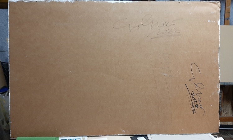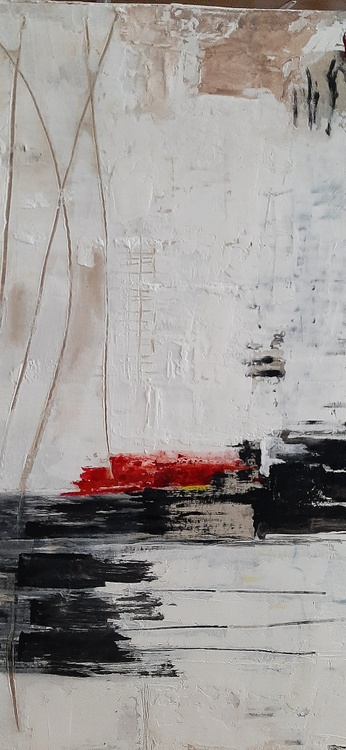 arcylic, stucco, mixed media on cardboard cm. 1 - cm. 66x107 segni e grafismi caratterizzano questa opera dove viene esaltata la sua materia nel senso più naturale e primitivo caratterizzata da strati di stucco per definire ancora di più la sua natura profondamente materica.