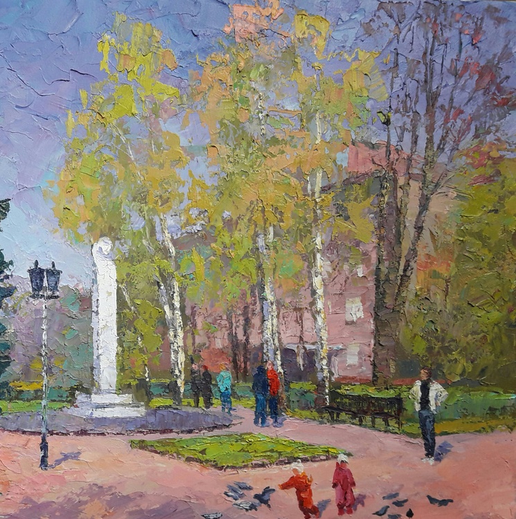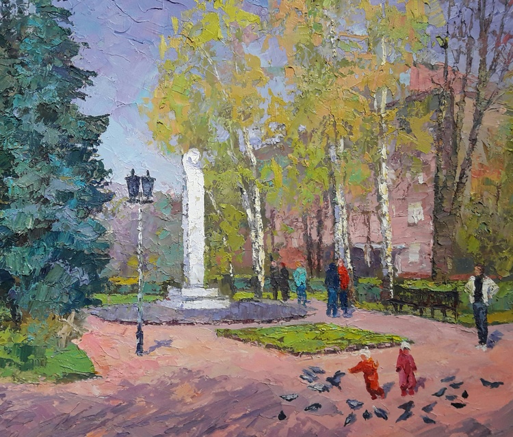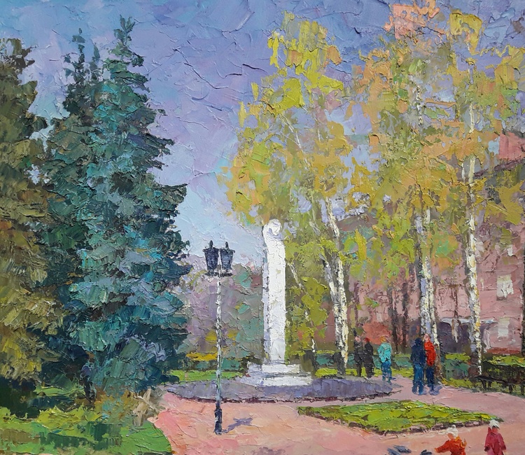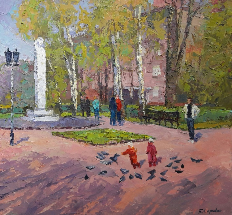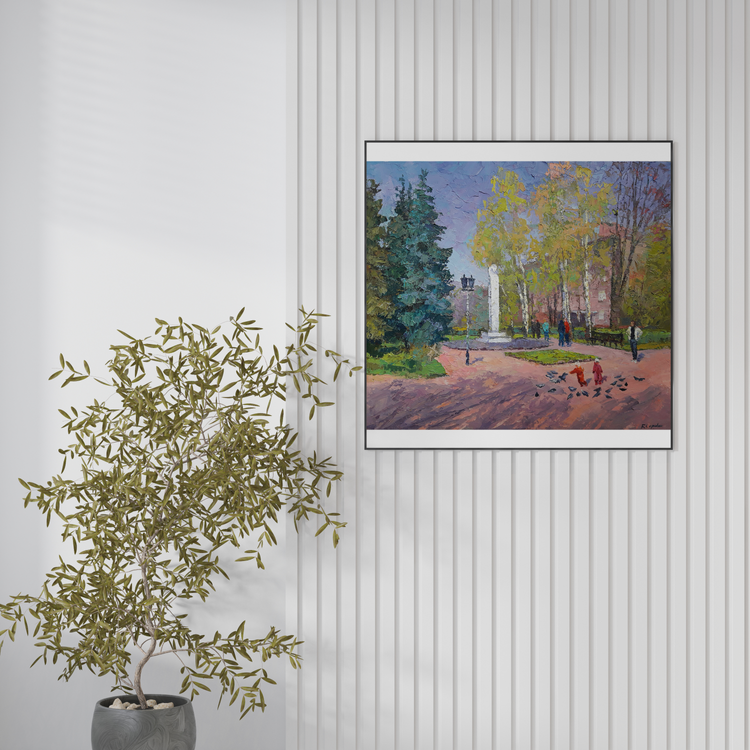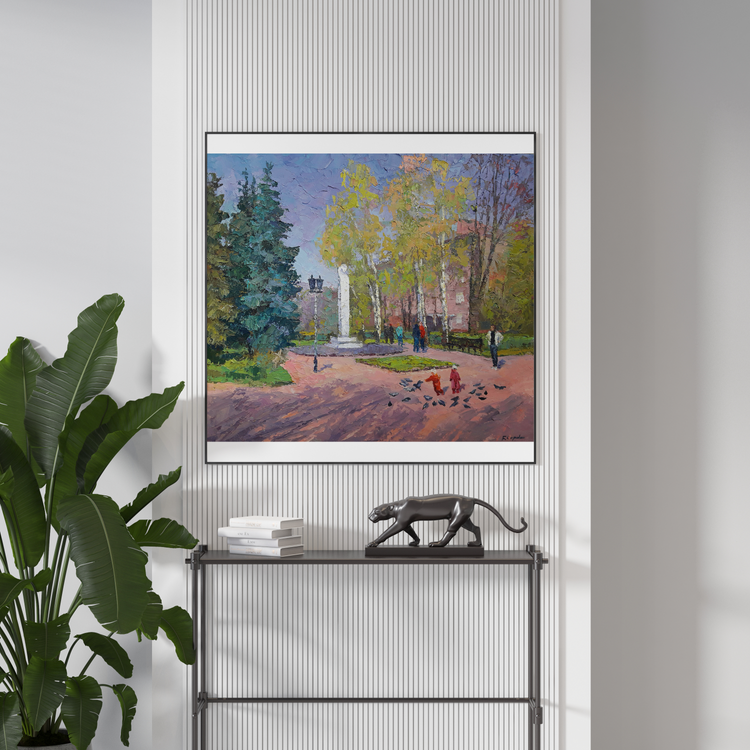 Welcome to "Pushkin Boulevard", an oil painting that captures the beauty and serenity of a city park on a sunny day. The scene is teeming with life, from the people strolling through the park to the trees that provide shade and Shelter. The colors are bright and vibrant, making this painting a feast for the eyes. The artist has masterfully captured the essence of a summer day, and we are sure that you will enjoy spending time with this painting in your home. 224