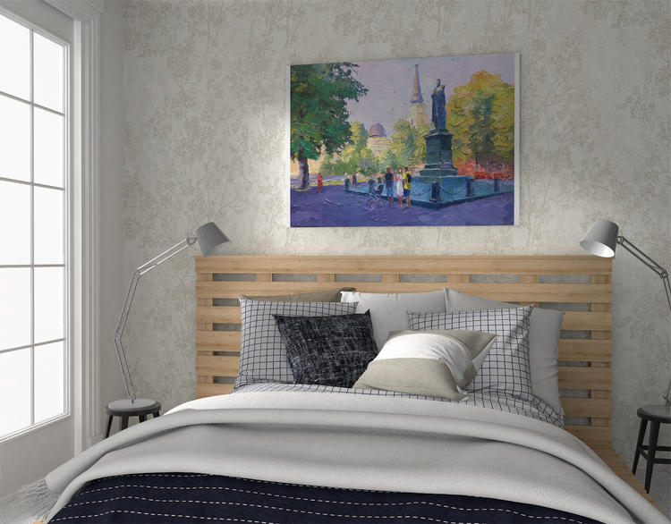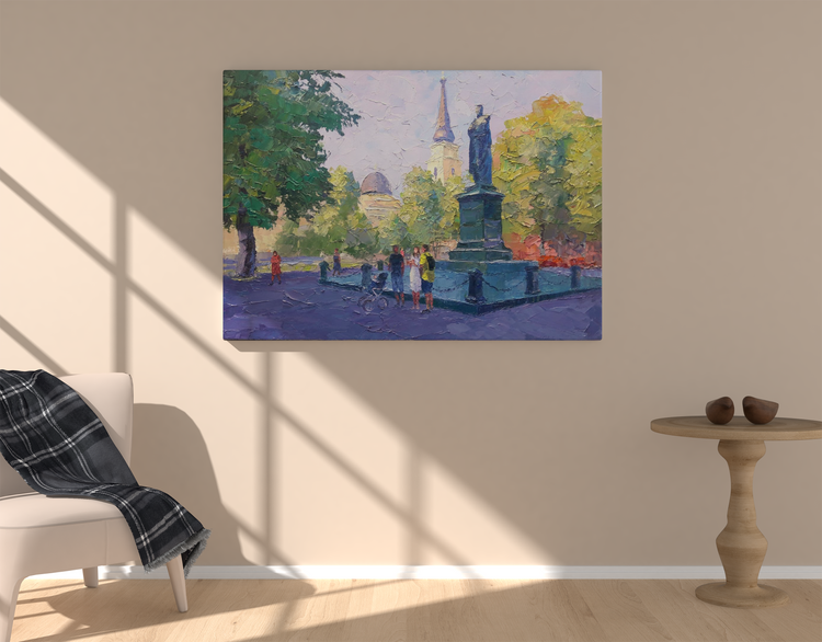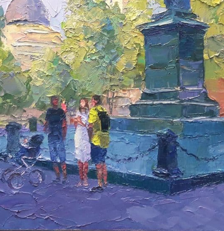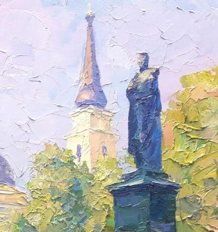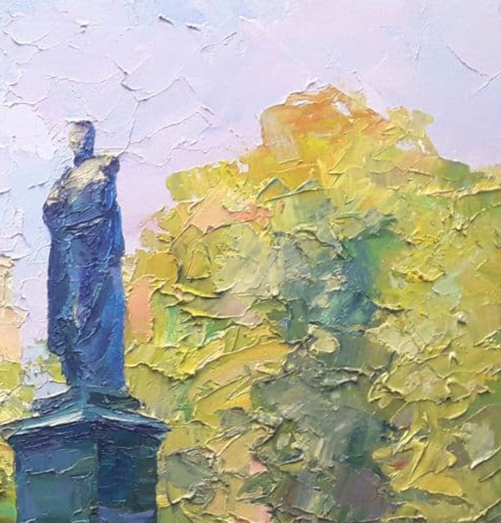 Odessa is a historic city located in Ukraine. The Monument to Count Vorontsov is one of the city's most popular tourist attractions. This oil painting captures the monument in all its glory, surrounded by tourists enjoying the beautiful scenery. The colors are rich and vibrant, making this a truly stunning piece of art. 713