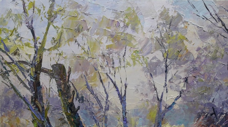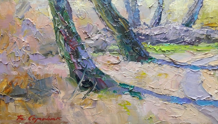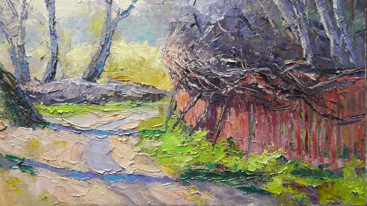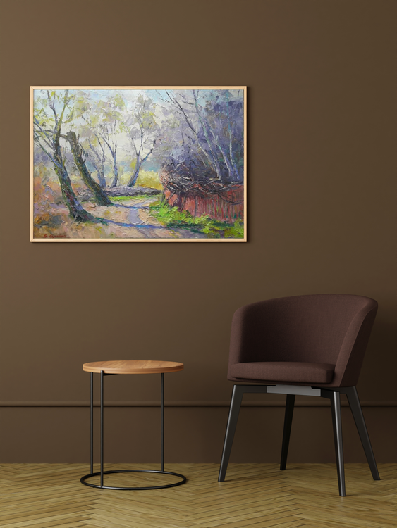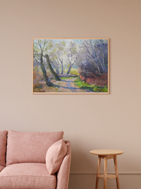 This beautiful oil painting, entitled "Spring Sketch", is a must-have for any art lover! The scene depicted is that of a spring forest, with a road winding through the trees and a clearing behind them. The colors are absolutely stunning, and the artist has managed to capture the feeling of new life and growth that comes with springtime. This painting would make a perfect addition to any home, and is sure to bring a touch of beauty and elegance to any room. 747