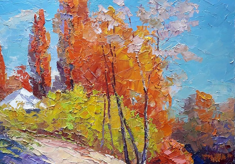 "Sand Hill" by Ukrainian artist Serdyuk Boris portrays a tranquil landscape centered around a prominent sand hill bathed in soft, warm light. Using his signature textured brushstrokes and a palette of earthy tones—golden yellows, muted browns, and subtle greens—Boris captures the serene beauty of the natural environment. The sand hill rises gently against a backdrop of open sky or distant horizon, emphasizing the simplicity and harmony of the scene. In this work, Boris expresses an appreciation for the quiet elegance of untouched nature. The painting invites viewers to reflect on the peacefulness found in ordinary landscapes and the soothing presence of natural formations like sand hills. By highlighting the gentle contours and earthy colors, the artist conveys a sense of calm and timelessness, celebrating the understated beauty that often goes unnoticed in everyday surroundings. 826