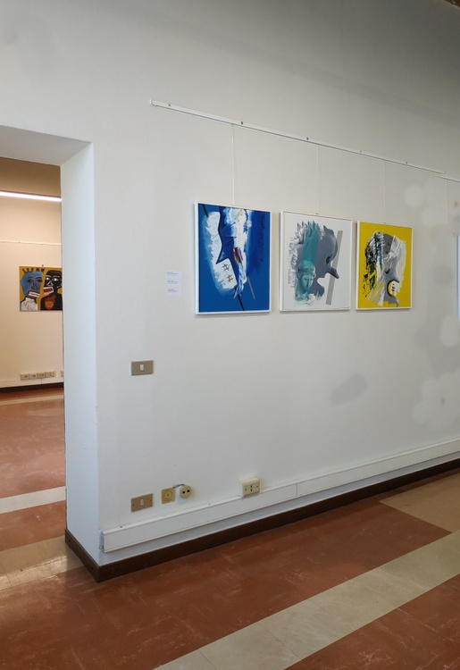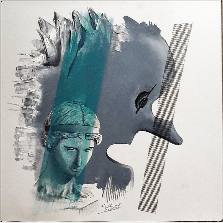 polyester net, mixed media on wood panel - cm. 60x60 - framed signed on the back