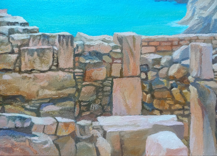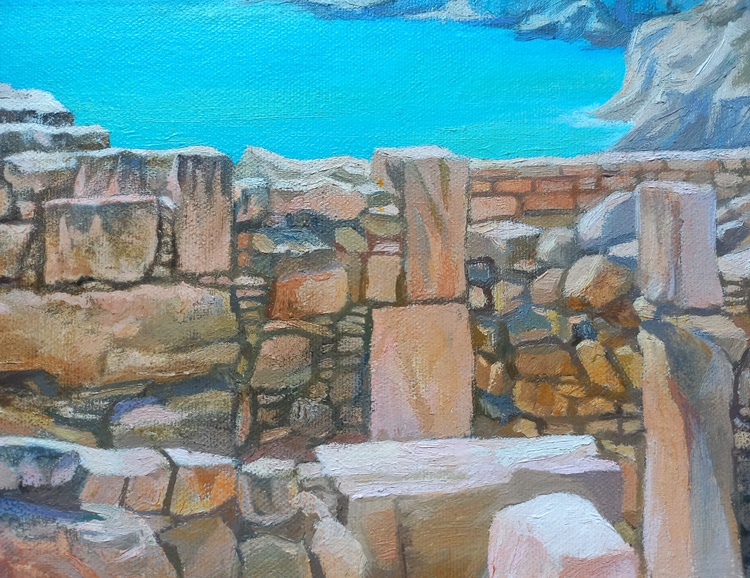 On the southwestern coast of Cyprus, among the ruins of ancient Kourion, time seems to stand still. Stones that have witnessed millennia gaze into the turquoise expanse of the sea, where the quiet voice of history can still be heard. A solitary Ionic column rises like a vertical of memory, standing amidst light and open space. Above this silent scene, seagulls soar, linking the celestial and the earthly, the ancient and the present. Soft shadows and the play of light on the warm stone evoke a sense of tranquility, contemplation, and a striking presence of antiquity — not forgotten, but alive in the breath of nature.