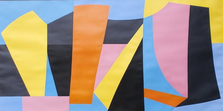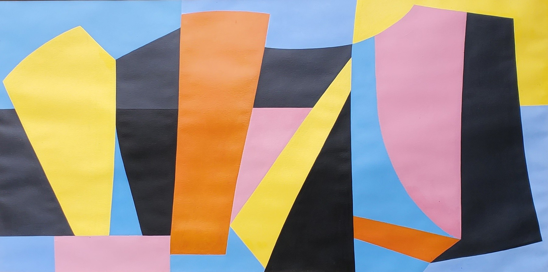 It is a large acrylic painting on archival paper, mounted on luan and wood frame support. It would benefit from glass or plastic over it, (not included). 28"x 56". It is free to take.