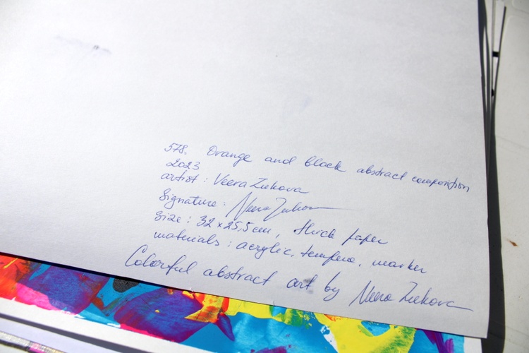 "Orange and Black Abstract Composition" is a bold and contemplative abstract artwork by Veera Zukova, a contemporary artist based in Ylitornio, Finland. Created with acrylic on paper, this piece explores contrast, balance, and the emotional power of color through a reduced yet expressive visual language.
