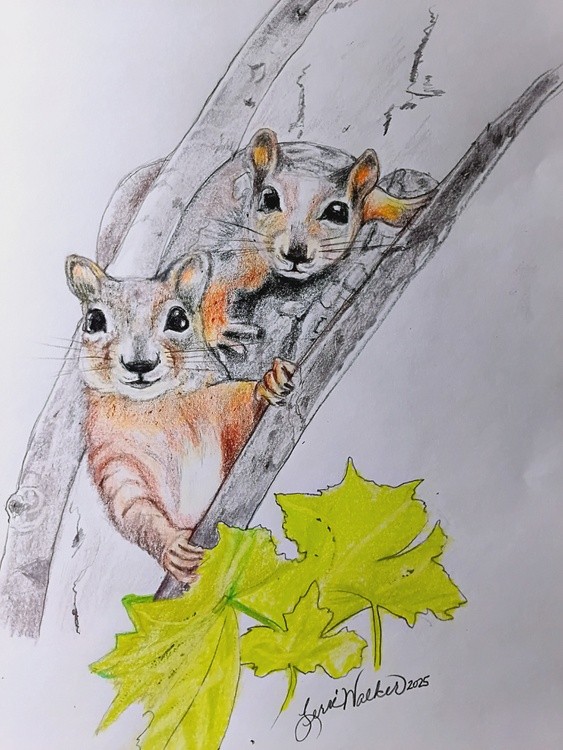 Two squirrels on a tree looking at me