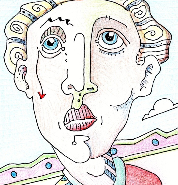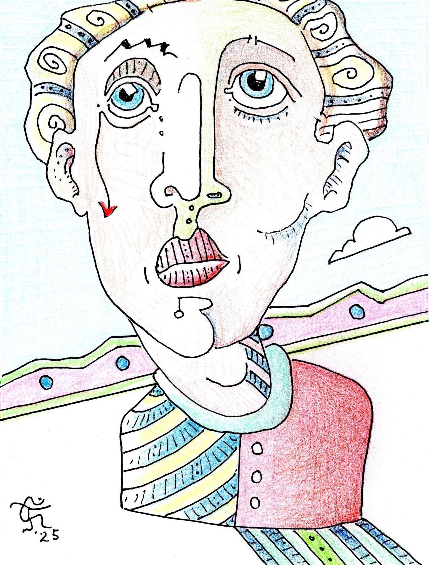 Or 'the tracks of my tears' if you are into old songs. This is a 6 by 4.5 inches gel pen with color pencil drawing on medium bond acid-free paper. Original Jones Art pumps out another one in something resembling 'holiday style' in northwest Austin, Texas.
