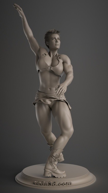 I took one frame from my old animation and re-rendered it using clay shading. I’m actually in the process of remaking this character. https://veda3d.com/muscular-girl-3d-character-veda-v2/