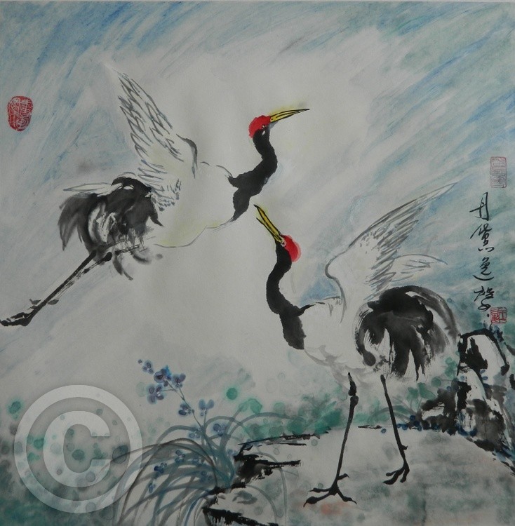 Painted in 2014, this signed original Chinese Brush (Watercolor) impression is 26" x 26". It is painted on double-layer rice paper, surrounded with a 2.5" silk border. This painting is currently not framed. The original painting, if purchased, comes with a signed “statement of authenticity” with an Artist Biography. This statement can be used by the buyer for insurance, estate planning, personal assets or resale of this painting if so desired. All copyrights of original and/or for reproductions are reserved by LRB Fine Art. Reproductions on canvas can be purchased at: https://fineartamerica.com/profiles/min-w or www.artpal.com/ontap456.