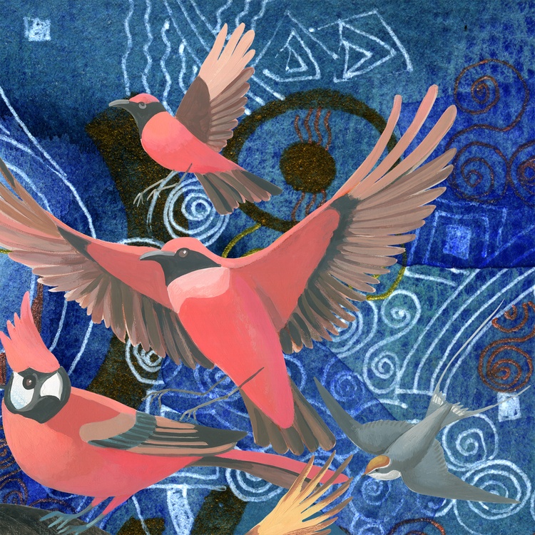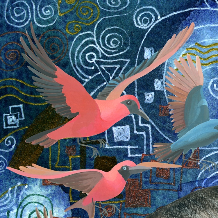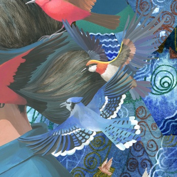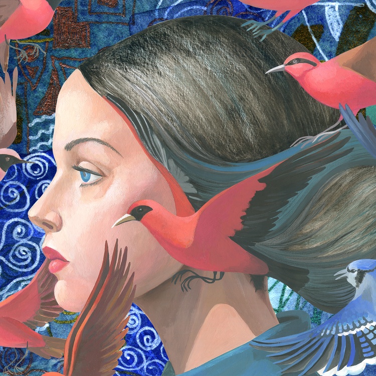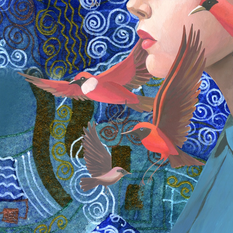 This collage is one of 5 versions of playing with the motif of my work "Liberation by wings" (2024). As in the triptych "Metaphysical wanderings...", depicting a Japanese geisha in different locations, in the same way I change the background for the girl with birds, observing the refraction of the context depending on the mood. This is a study of the interaction of an object and its environment. The background in a video is changed in a similar way using chromakey. A convenient tool that erases the boundaries of the criteria for the authenticity of events, making it possible to present them from the required point of view. In my understanding, this is a modeling of alternative realities. It is human nature to think through possible scenarios depending on specific circumstances and own actions, even unlikely and even impossible. By changing places and roles in this world, seekers of a better life select the most acceptable habitats for themselves, simultaneously learning about themselves and the world, improving the algorithms of their interaction with it. In this collage, I placed the girl into the abstract space of "Flickering Space 1" (2019). In this collage, I placed the girl in the abstract space of "Flickering Space 1" (2019). Abstract art by its nature is not intended to reproduce objective reality. Therefore, this type of background creates the impression of not a physical presence in a specific place, but a world of reflections in which the heroine of the collage is immersed, regardless of where she is. She is in a meditative state. It seems that wherever she is - in the desert, in the forest, in the Arctic, nothing could shake her absolute immersion. This really happens quite often - when a person does not realize itself in some historical period corresponding to its present, role and position in which it finds itself, etc. Sometimes this is caused by deep stress, and sometimes it is simply the acquisition of wisdom.