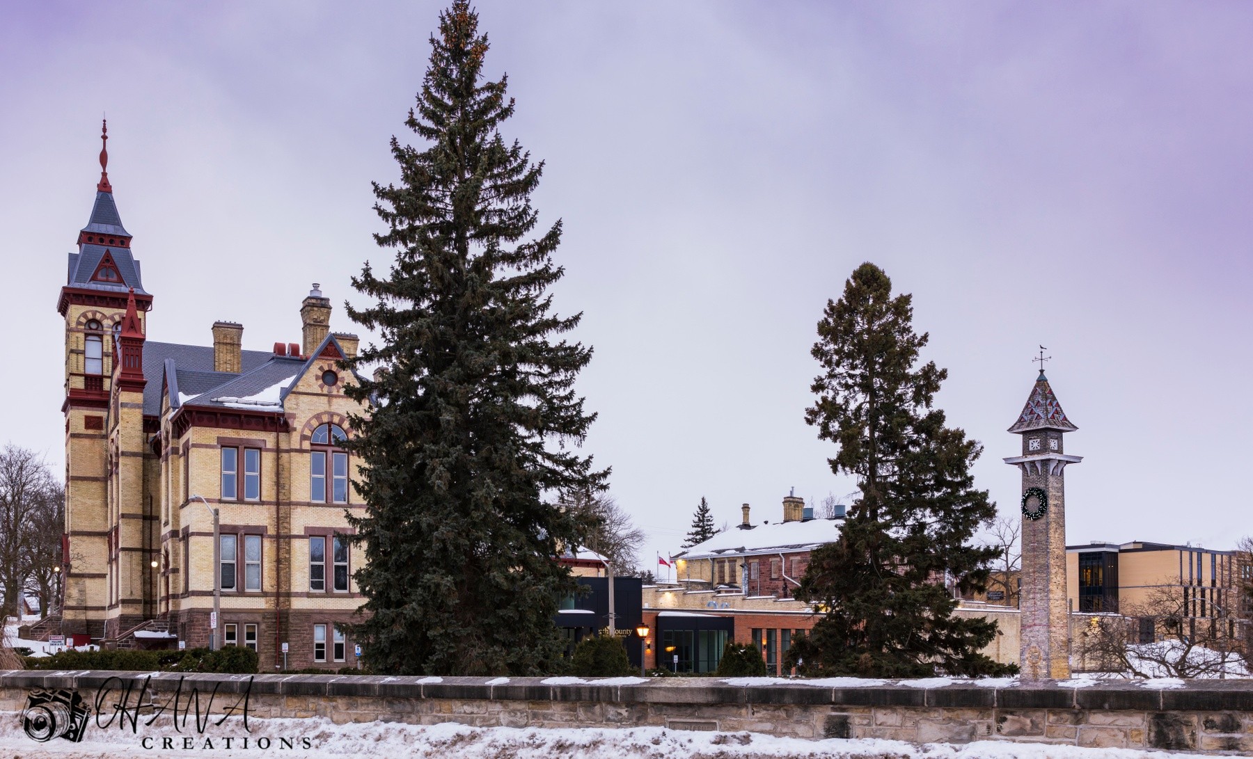 Shakespearean Gardens, with view of County Court House, Stratford, Ontario, Canada