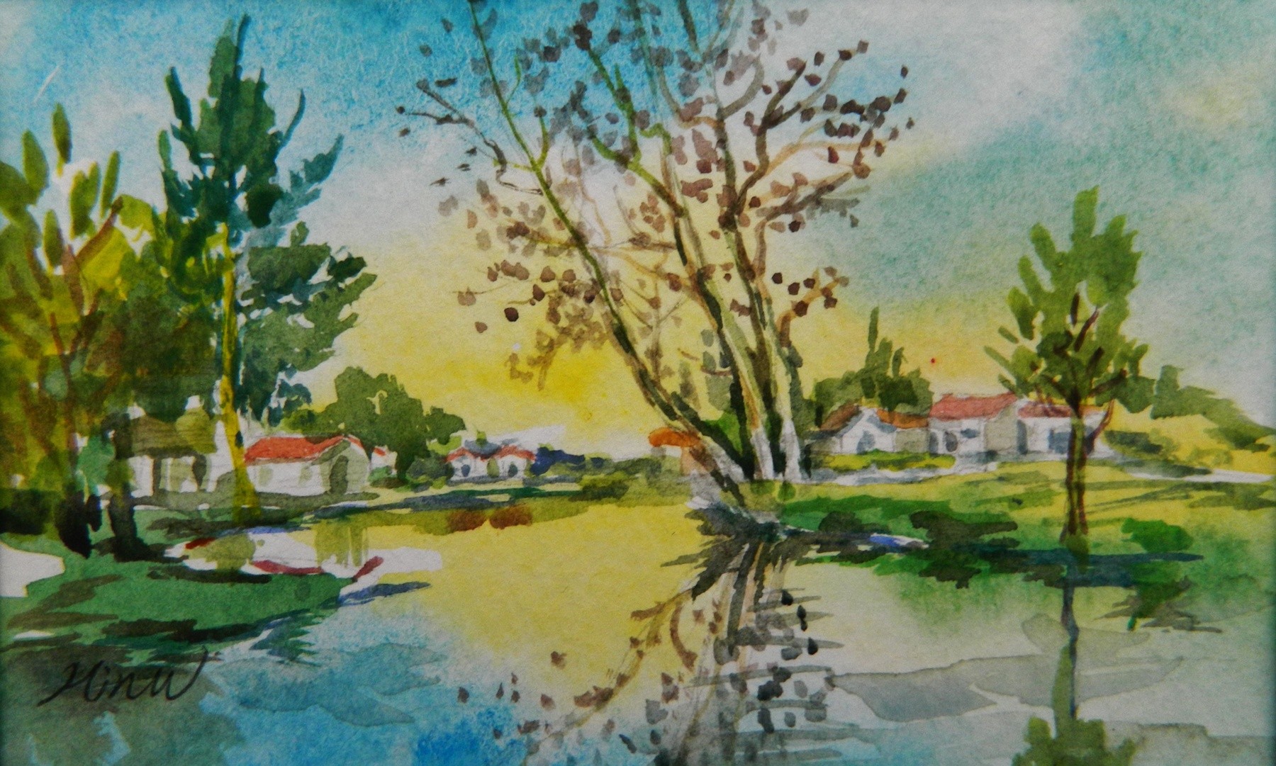 Painted in 2011, this signed original watercolor impression painting is 4.5" x 4.5". It is painted on an artist's cold-press paper. This painting is formally framed, ready for display, and included in the price if purchased. Photos of this framed painting are available upon request. The original painting, if purchased, includes a signed “statement of authenticity” with the Artist’s Biography. This statement can be used by the buyer for insurance, estate planning, personal assets or resale of this painting if desired. LRB Fine Art reserves all copyrights of the original and/or reproductions. Reproductions on canvas can be purchased at: https://fineartamerica.com/profiles/min-w or www.artpal.com/ontap456