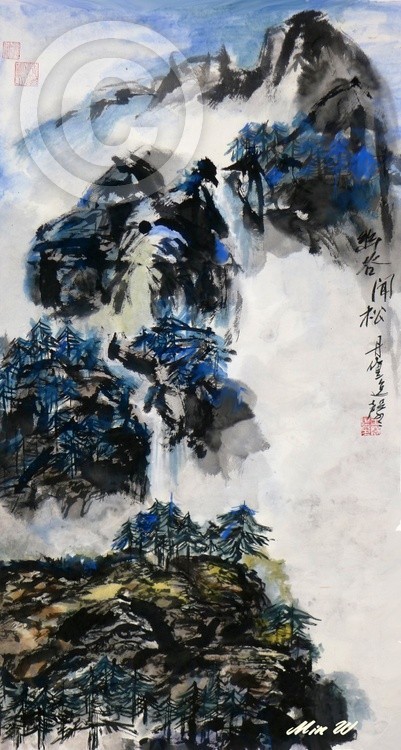 Painted in 2013, this signed original Chinese Brush (watercolor) Landscape impression painting is 26" x 53”. It is painted on double-mounted rice paper. Incorporated surrounding the painting is a 2.5" silk border. This painting is not formally framed. If purchased, this painting can be safely shipped in a mailing tube. The original painting, if purchased, includes a signed “statement of authenticity” with the Artist’s Biography. This statement can be used by the buyer for insurance, estate planning, personal asset protection, or resale of this painting, if desired. LRB Fine Art reserves all copyrights of original and/or reproductions. Reproductions on canvas can be purchased at: https://fineartamerica.com/profiles/min-w or www.artpal.com/ontap456