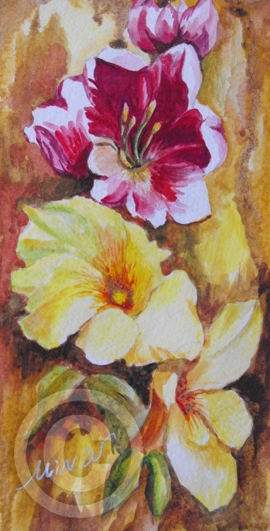 Painted in 2010, this signed original Floral Watercolor impression painting is 4" x 8”. It is painted on the artist's cold-pressed paper. This painting is formally framed, ready for display, and included in the price if purchased. Photos are available upon request of this framed painting. The original painting, if purchased, includes a signed “statement of authenticity” with the Artist’s Biography. This statement can be used by the buyer for insurance, estate planning, personal assets or resale of this painting if so desired. LRB Fine Art reserves all copyrights of original and/or reproductions. Reproductions on canvas can be purchased at: https://fineartamerica.com/profiles/min-w or www.artpal.com/ontap456
