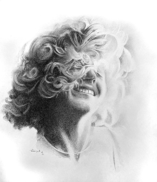 nice sketch. the facial expression is great. the details is great. the depth is great. the shading is excellent. the presentation is balanced and very eye appealing to the viewer. creative and awesome work overall.