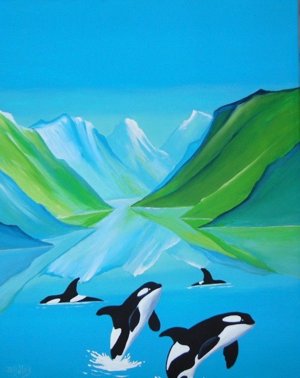 16x20 acrylic on gallery wrap canvas....Orcas are apex predators, often called "natural born killers" because they have no natural enemies in the wild and dominate every marine ecosystem they inhabit.