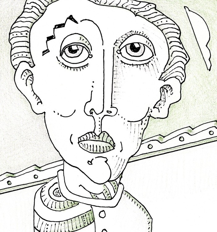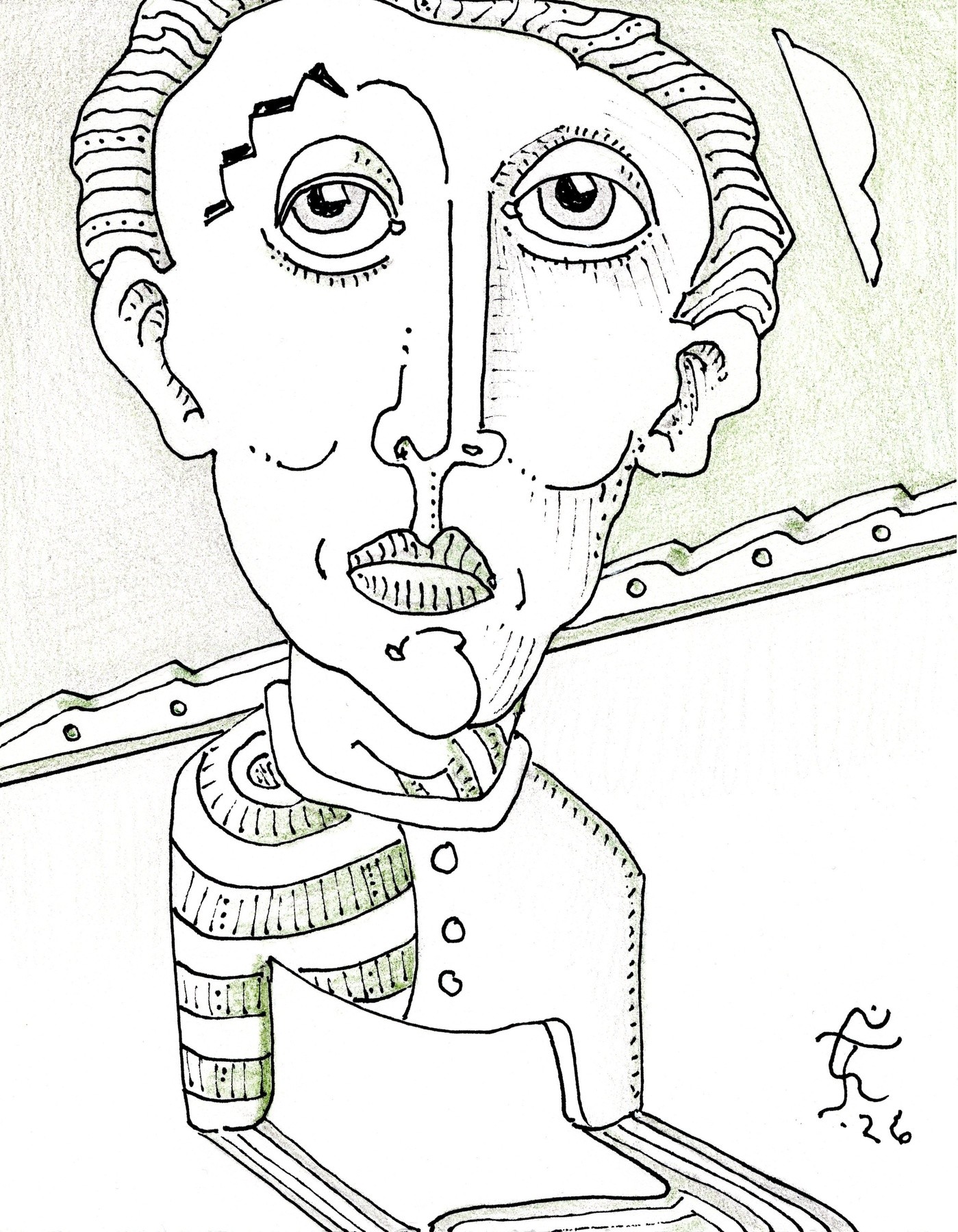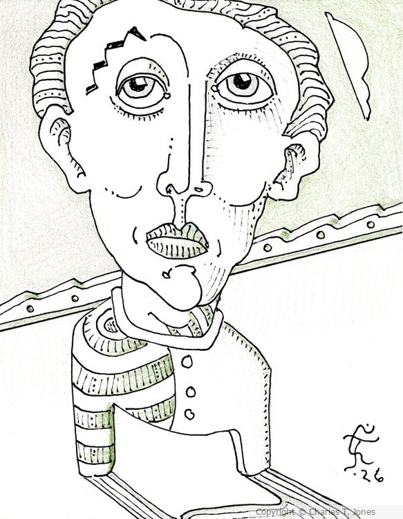He has that innate assurance that only prolonged isolation by the masses can harden into being. This is a 6 by 4.5 inches gel pen with more Crayola Twistable on acid-free paper. This time I used the gray along with a gray green. Original Jones Art counting his little piggies in northwest Austin, Texas.