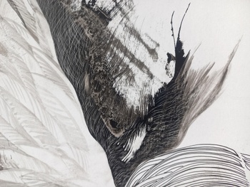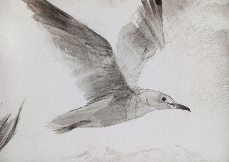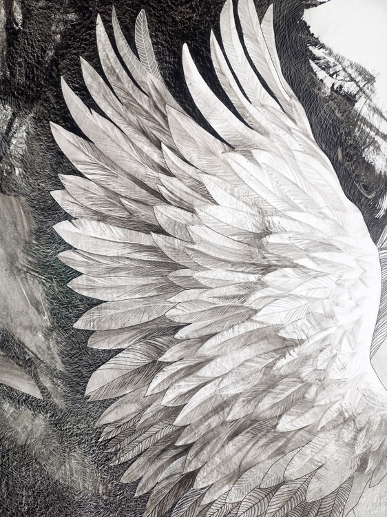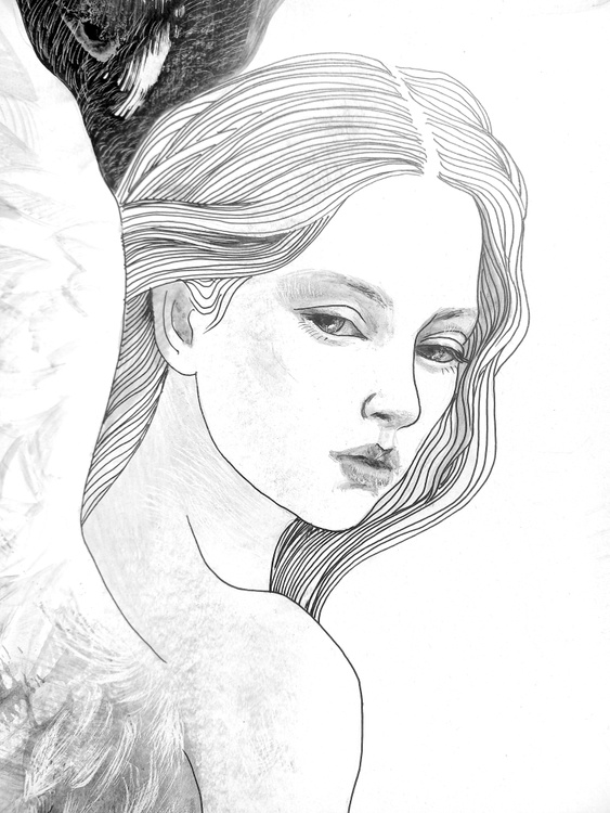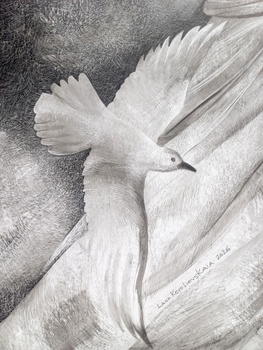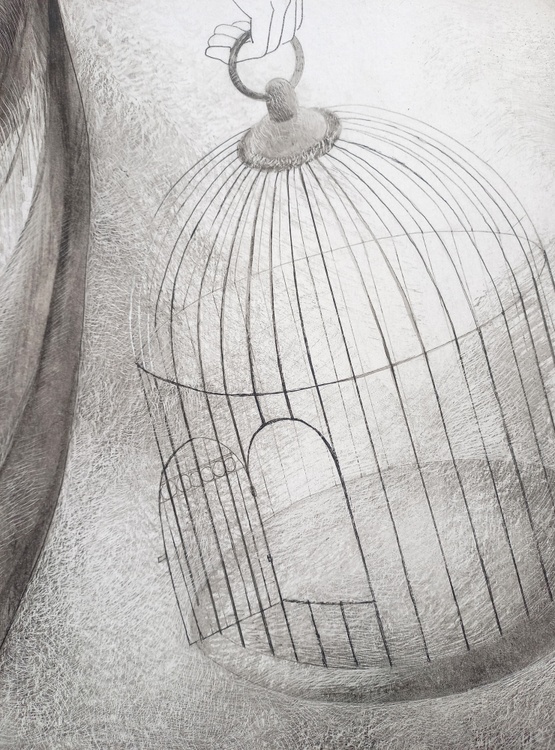 The graphic work depicts a winged young woman holding an empty birdcage in her hand. Birds fly freely around her, and the surrounding space is open, without visible barriers. The cage has lost both its function and its scale: it is too small for her, like a form of past experience that no longer corresponds to her present state. Yet her gesture preserves it — not out of necessity, but out of the inertia of memory. Freedom has already occurred as a fact, but has not yet become an inner skill. Her wings are open, her body is ready to move, yet her hand still holds what no longer has power over her. The empty cage becomes a sign of lived restriction that continues to exist not in outer space, but within the person — as a trace, a habit, a cautious pause before flight.