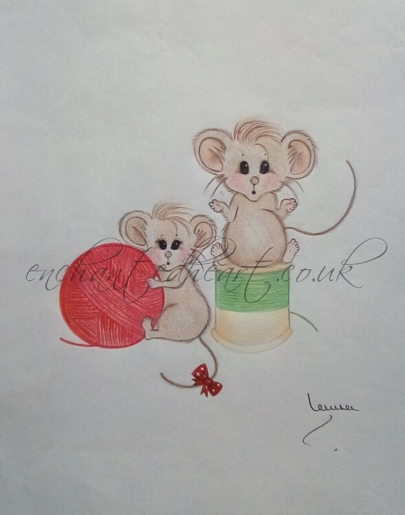 Illustration. Have you ever lost a thread whilst sewing and darning or dropped a stitch whilst knitting? Darn it! Then you may require a helping hand from a little mouse or two. These little cuties are eager to please and very sweet natured. Coloured pencil accentuated with felt tip pen.