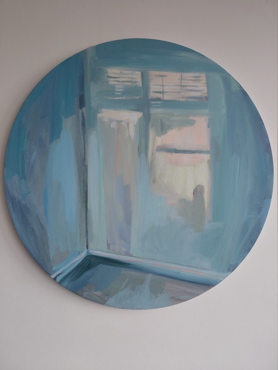 Acrylic work on round mounted canvas. Reflections playing on the wall.