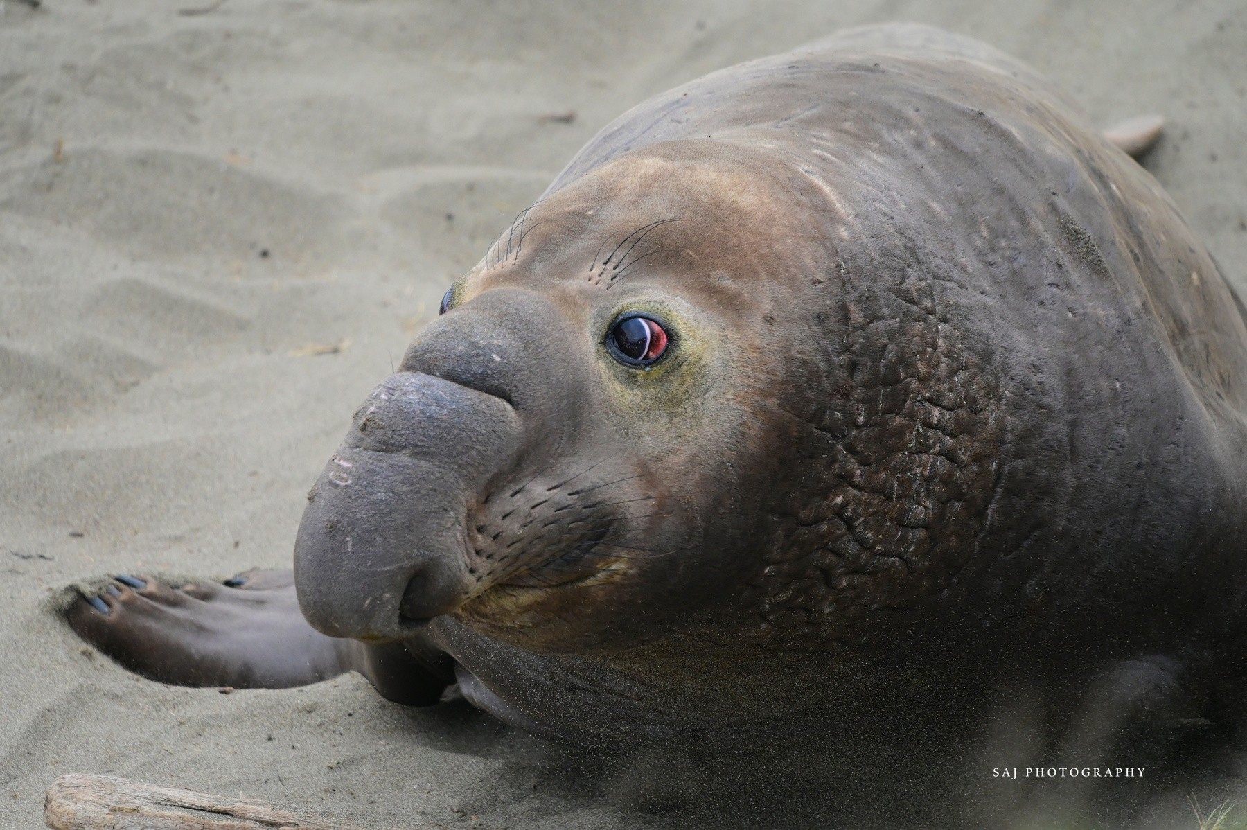 looks like he is saying "what's that?!".. cool capture. the angle of the shot of this surprised look walrus is great. the clarity is great. the capture of the light is great, the presentation is balanced and eye appealing to the viewer. good eye and great job overall.