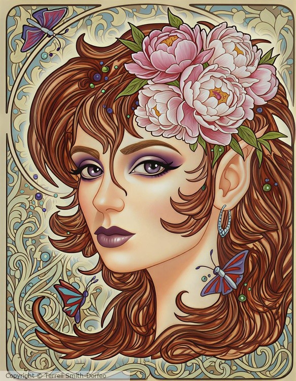 This is an older work I sold a while ago, revamped with AI. She was originally titled "Butterfly Queen Fey." The drawing was an attempt at a self-portrait. Here is the original: https://www.artwanted.com/imageview.cfm?id=277679