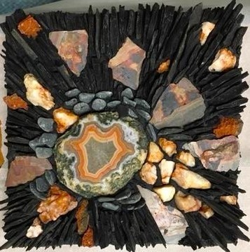 6" x 6" on board. Stones with slate