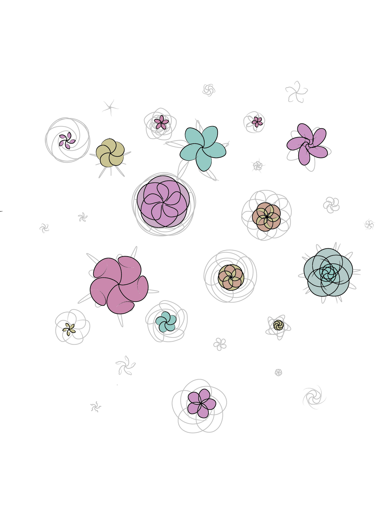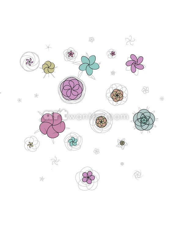 A series of small, geometrical flower-like motifs with a retro theme.