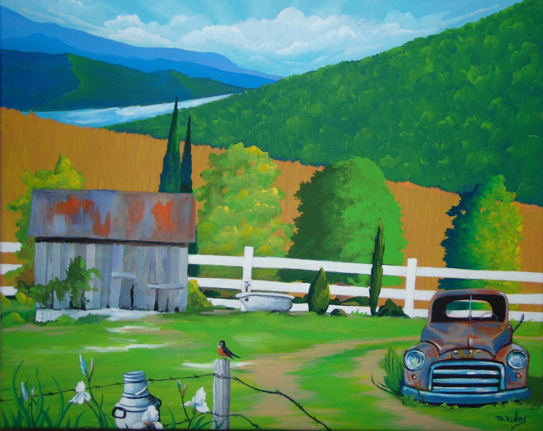 Artist Reply: it's in the 80's here today but monday we had bits of snow ....strange spring this year ....it bit my tiny plums .... hope my grapes do good .... so many cats roam around here the chipmunks stay in hiding ...robins every where