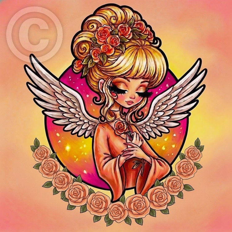 FAITH ANGEL by Terrell Dorfeo. Original artwork revamped as hybrid art. Ink, digital, and AI-assisted for the final design. She'd make a really cool t-shirt! She was created in 2013.