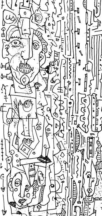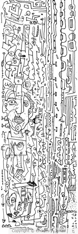 This little tidbit was part of a backing sheet I'd been using for quite a few of my recent drawings. I had been adding little marks here and there to make sure the ink was flowing properly. And then I thought I'd share it just because of the spontaneity in it. This is a 9 by 3.5 inches gel pen drawing on regular bond paper and a somewhat gibberish example of something approaching Original Jones Art here in northwest Austin, TX.