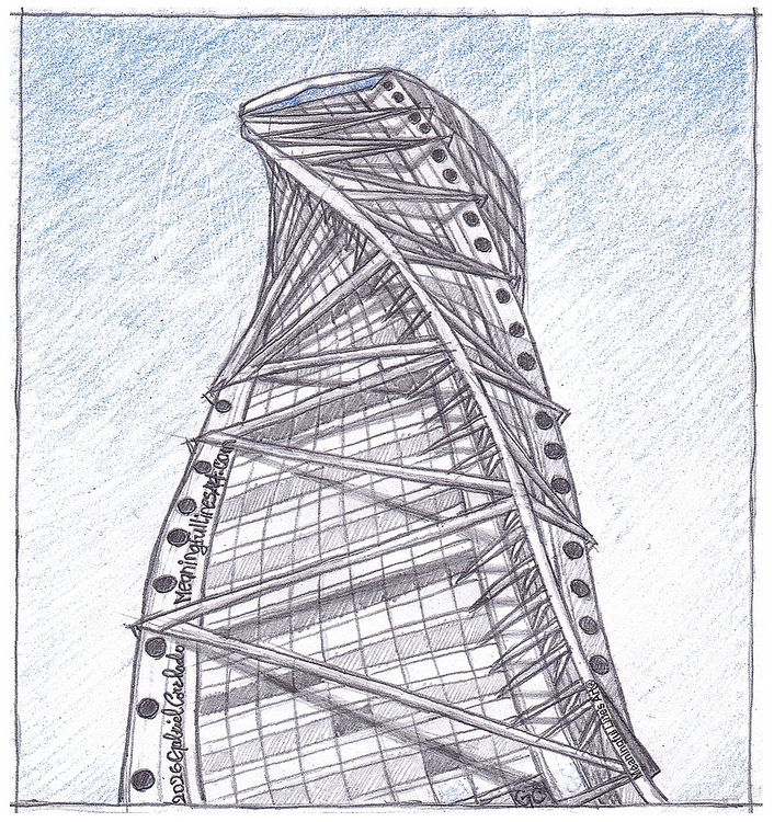 This is a sketch I created of a skyscraper called Turning Torso located in Malmö, Sweden designed by Spanish-Swiss architect Santiago Calatrava. "He's particularly known for blending high-tech engineering with graceful aesthetics." Read the full blog post, The Art of ART-chitecture at MeaningfulLinesArt.com/blog