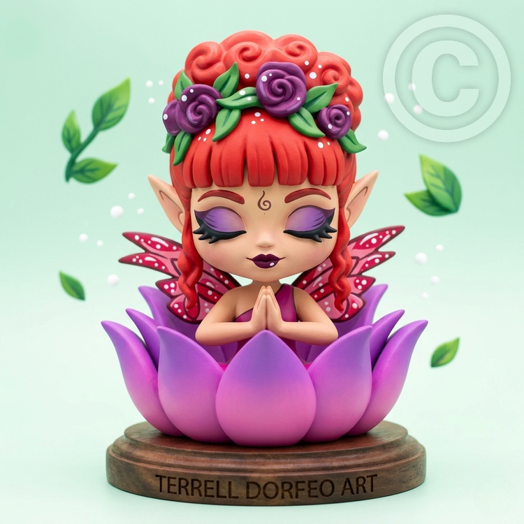 My Lotus Fairy appears to have achieved enlightenment! I created her as an ACEO/art card, and here she is as a figurine!