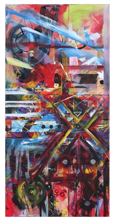 'Birth' from the series 'Birth, School, Work, Death') acrylic paint on stretched canvas. 36" x 24" KNewArt '26